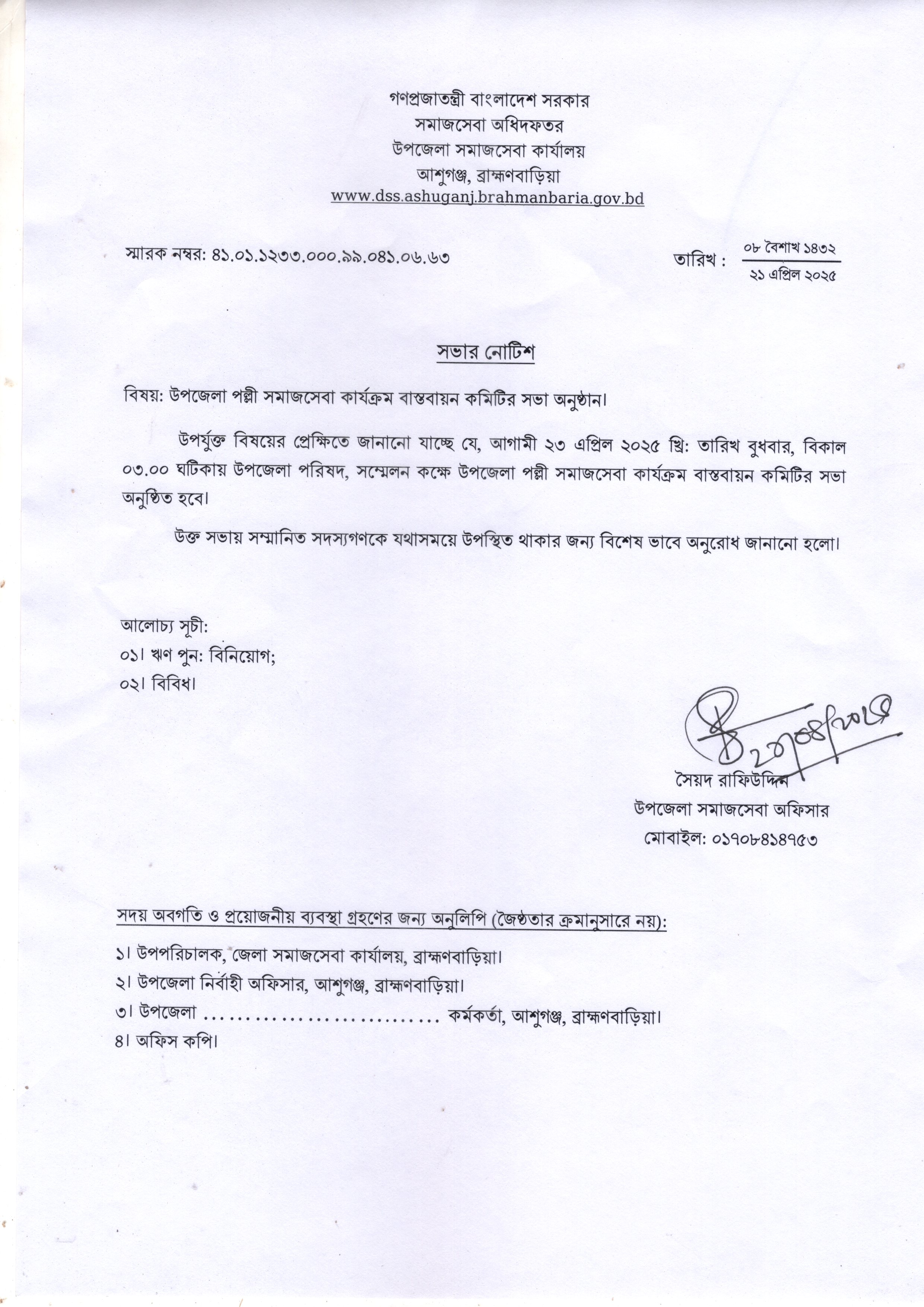 | ১ | সভার নোটিশ | | ২২-০৪-২০২৫ | দেখুন | |